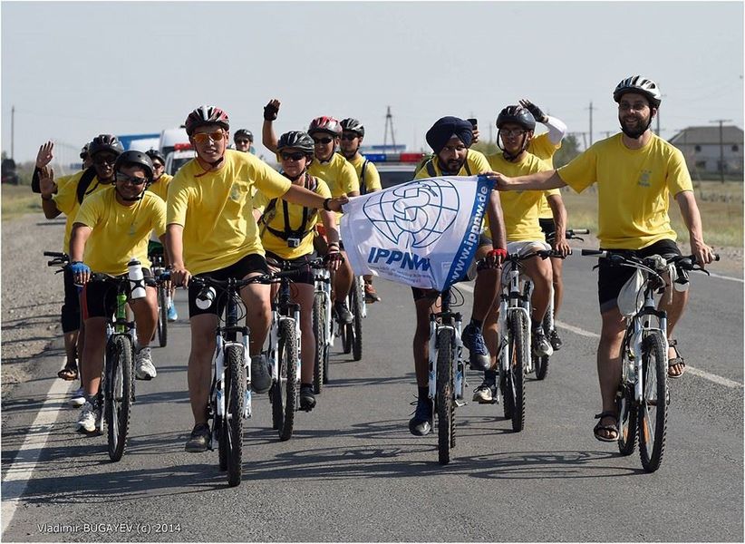 I joined my first IPPNW bike tour back in 2012 in Japan from Nagasaki to Hiroshima. I had just passed my medical school and started working as a physician in India. I was a novice cyclist and hardly had any physical fitness. We covered over 600 km gradually in two weeks, but it was still a challenging bike tour for me. A much water has flown down the bridge since then. I am now an Internal Medicine Specialist. I had participated in the German Bike tour (200 km) and organised the Kazakhstan Bike Tour (700 km). I am a professional mountaineer and have summited peaks up to 22,000 ft including Mt Kilimanjaro, the highest peak on the African continent with IPPNW Africa. I am also a marathon runner and hold a Guinness World Record for running the highest frozen lake half marathon at 14,000 ft.