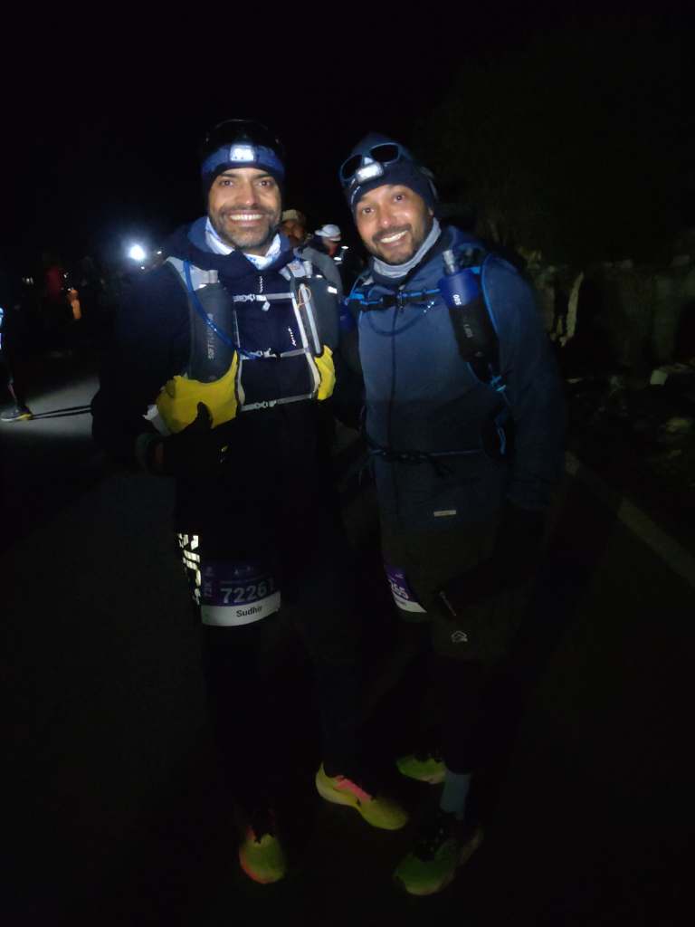 Barely two hours of sleep and the alarm rang at 11:50 PM, tossing me out of the bed with excitement. Yes, I felt exactly the same way! Bowel Gods were kind and having completed our morning rituals, we all gathered sharply at 1 AM. We prepared for our departure to the start point, located 17 km away, to be commuted by a bus now, an authorized move. We all exchanged greeting and wished each other luck as we boarded the bus. However, there was an eerie silence as we travelled those 17 km. Perhaps each one of us was having a continuous conversation with our own selves. We kept a calm façade to the others, even as we saw a few SRU participants enroute. What a sight and what a feel!